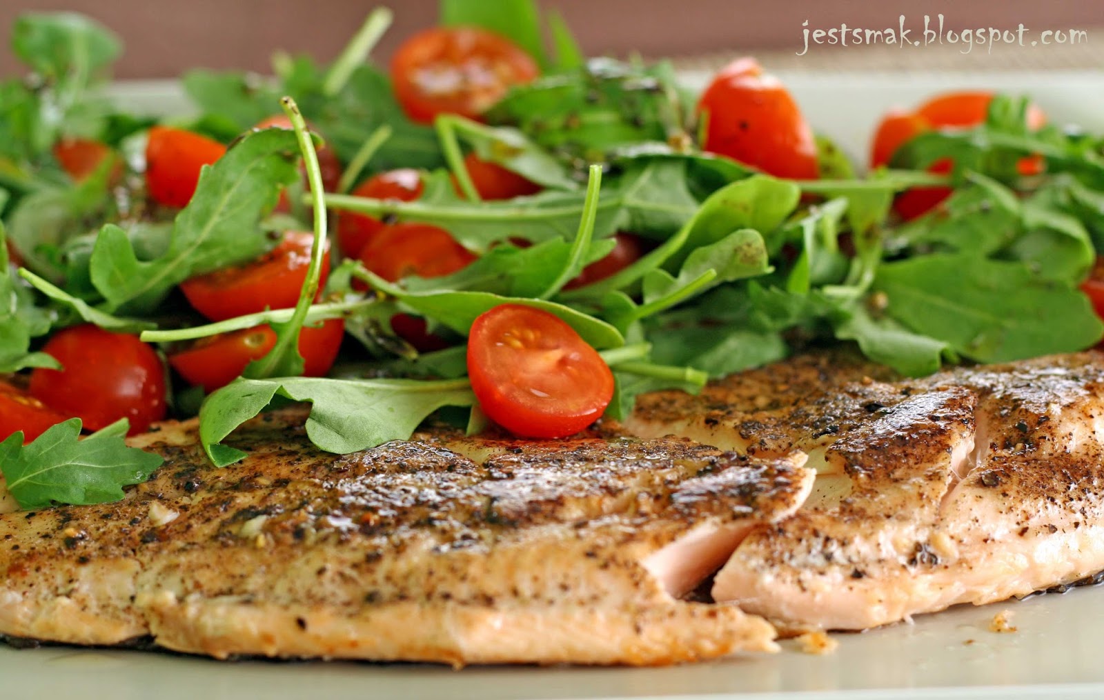 | Bruschetty z pomidorkami, rukolą i bazylią |